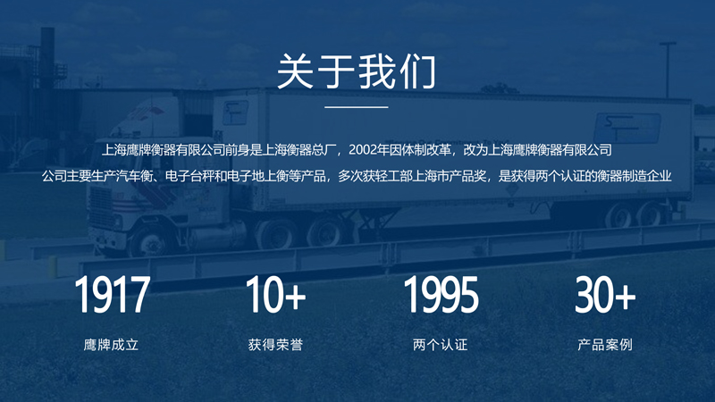 more+上海鷹牌衡器有限公司是上海衡器總廠轉(zhuǎn)制的企業(yè),前身是上海衡器總廠,創(chuàng)建于1917年,是地磅等衡器設(shè)計(jì)、制造廠家,主營電子地磅、電子秤以及地磅維修,2002年因體制改革,改為上海鷹牌衡器有限公司!